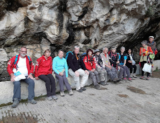 Et c’est par un sentier pierreux, entouré d'aplombs calcaires impressionnants que nous commençons notre randonnée. Ça monte, ça monte, mais le paysage est très beau avec un panorama superbe.